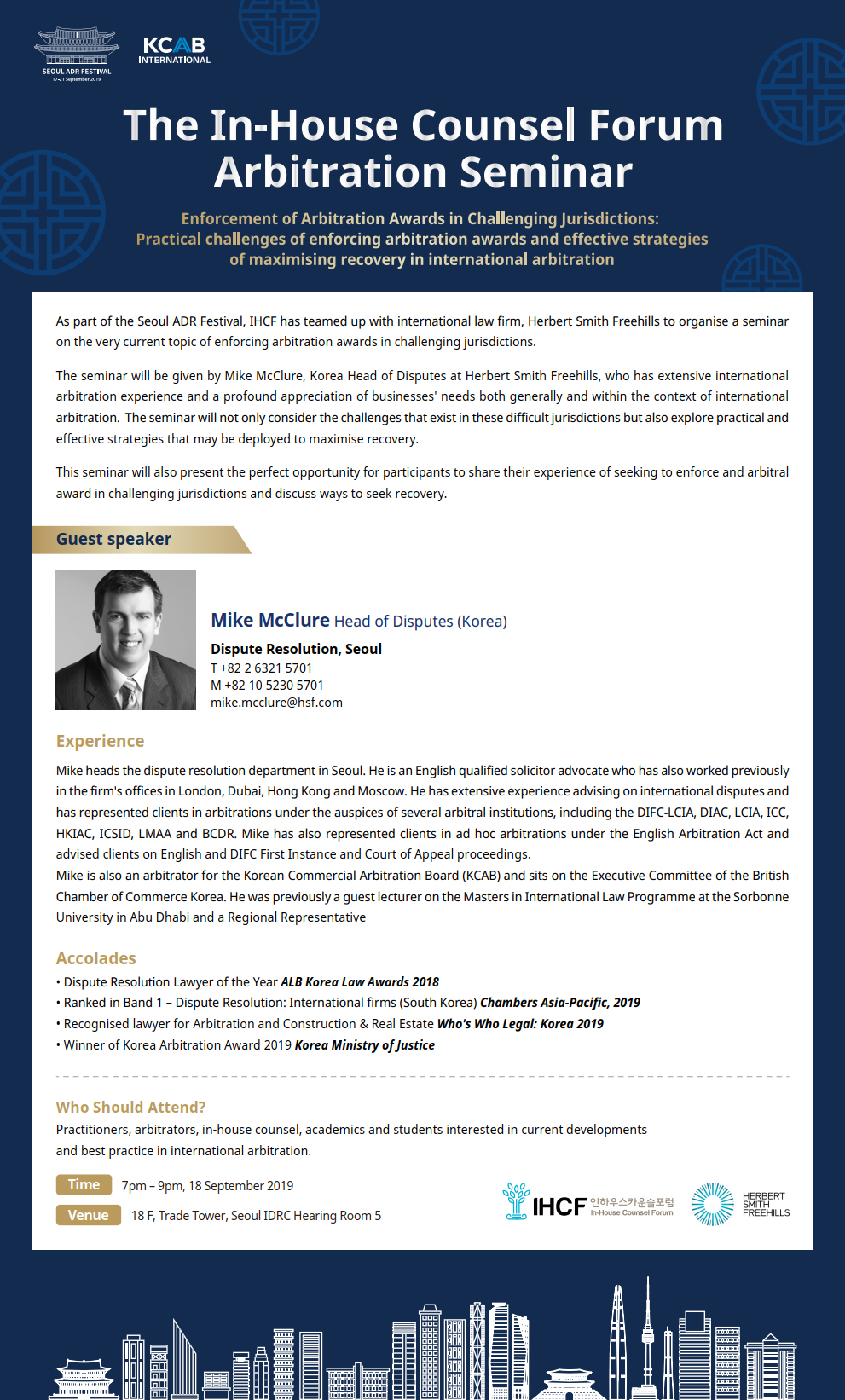 - Venue : 18F, Trade Tower, Seoul IDRC Hearing Room 5